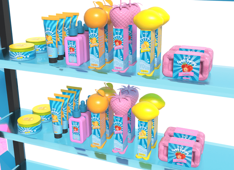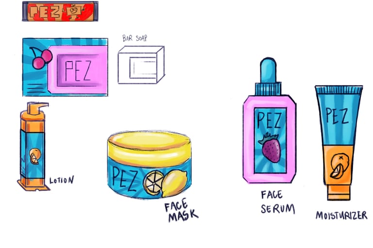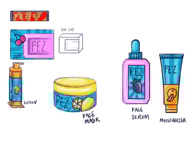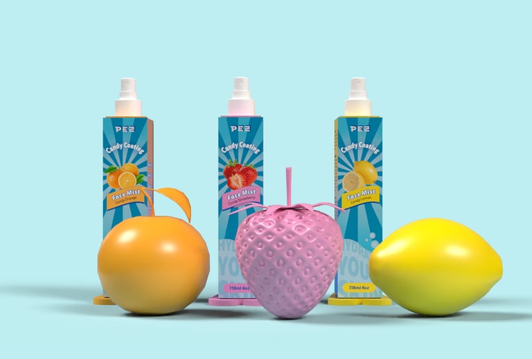 Candy Coating is an imaginary product line by PEZ, inspired by their fun and playful color palette, and the delicious flavors of PEZ candy. For decades, PEZ candies have delighted generations with their colorful, playful shapes and sweet, iconic flavors. But have you ever noticed something? The little candies kind of look like soap! Inspired by that charming similarity, I am excited to introduce PEZ Skincare—a fresh, fun approach to self-care that brings the nostalgic joy of PEZ into your daily routine.