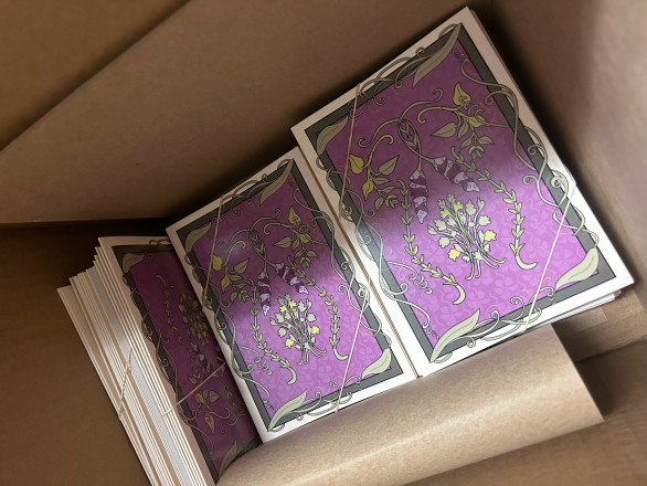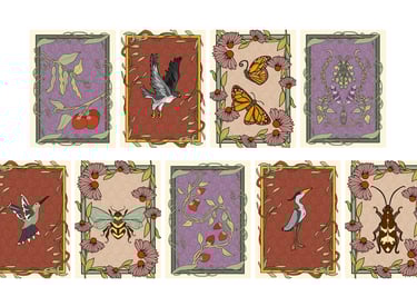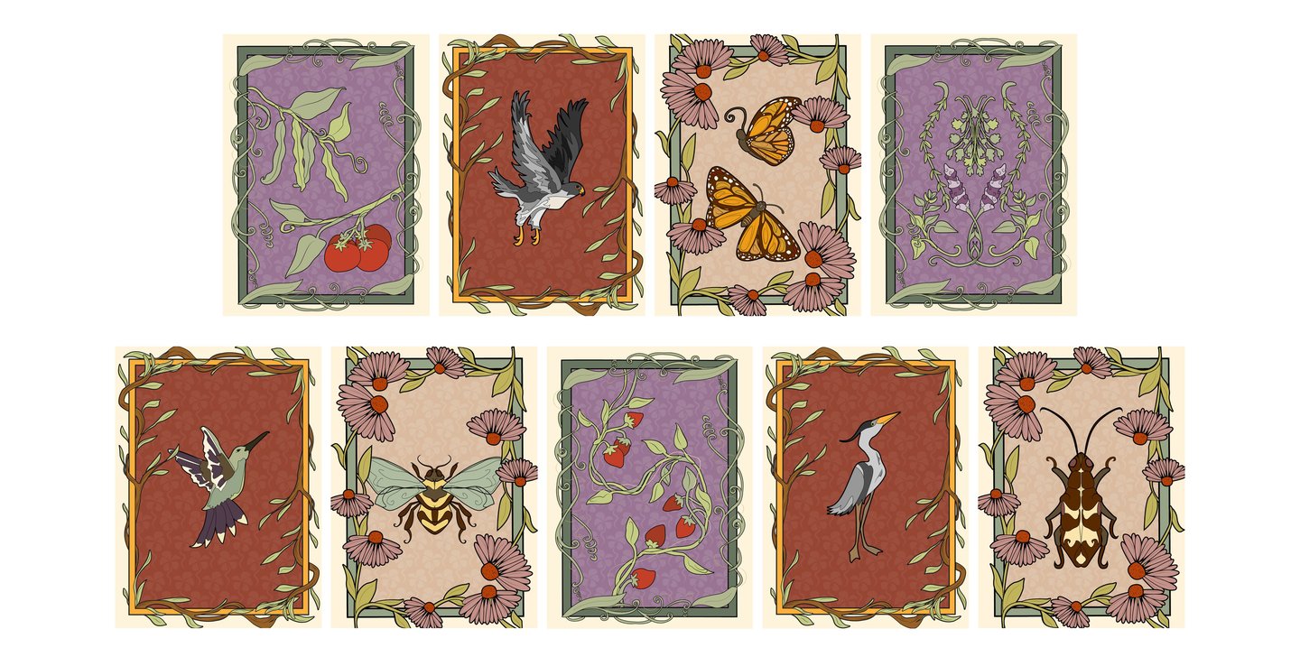 Earth Nouveau is a 9 card set of sustainability-themed cards, with the intention of spreading information about the sustainability efforts of UMass Lowell. It was created as a team by Andrea Garcia and Daly Grogan, who used the theme of Art Nouveau as inspiration.