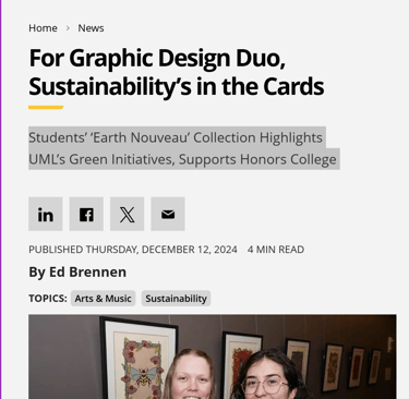 Students’ ‘Earth Nouveau’ Collection Highlights UML’s Green Initiatives, Supports Honors College...