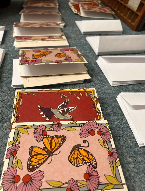 We adhered to a certain color palette for each of the cards. This made the colors really pop, and made the cards come together. Using the same colors throughout the pieces created a complete aesthetic.